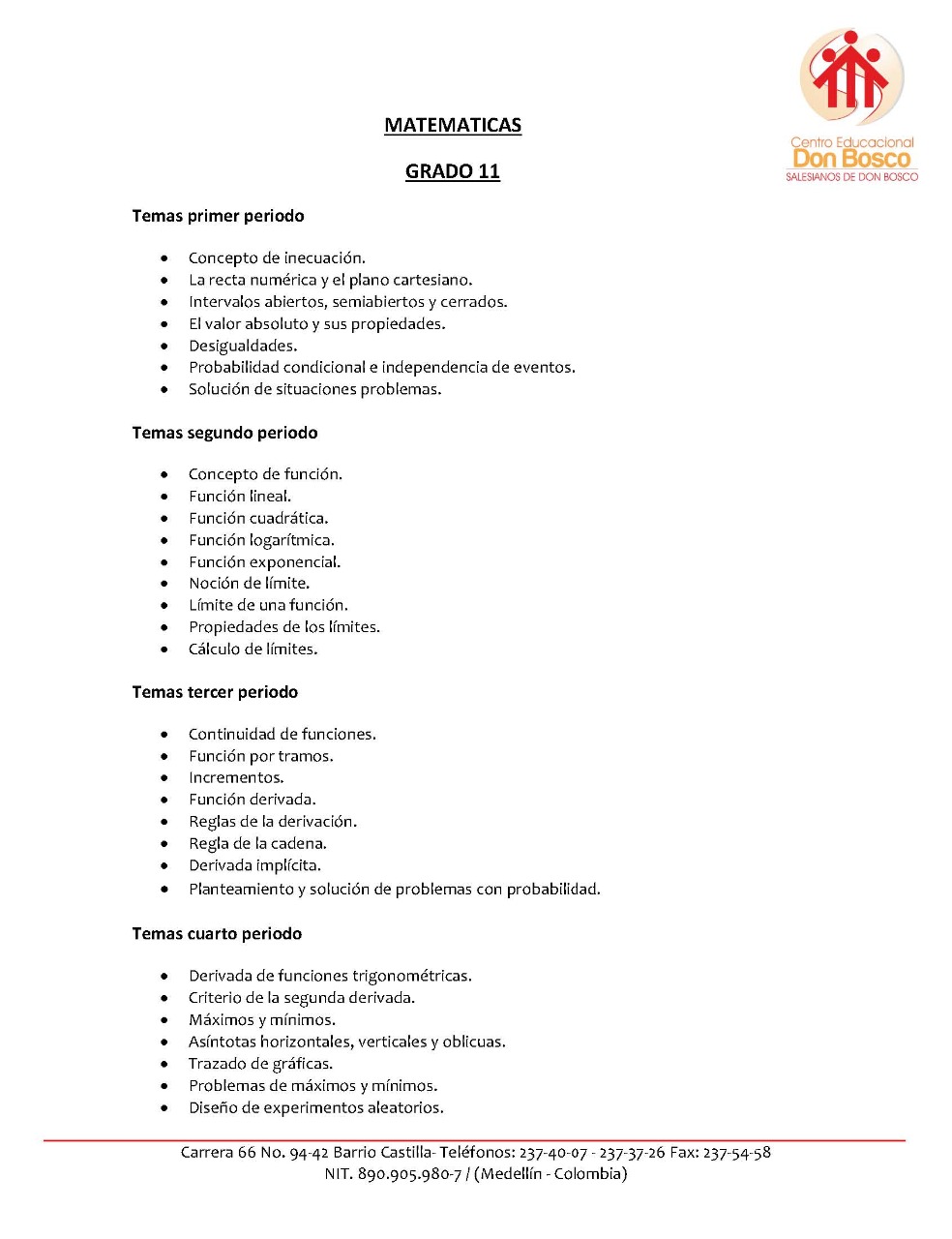 TEMAS CURRICULARES MATEMÁTICAS 11°